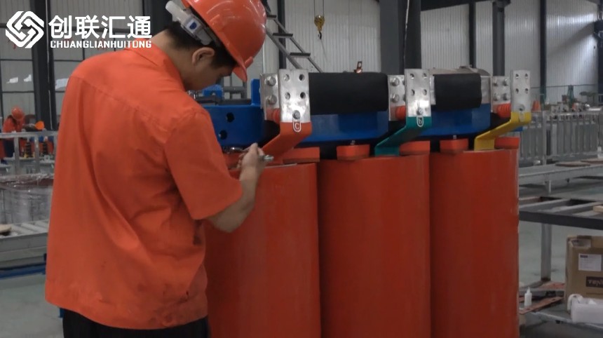 創聯匯通專業變壓器生產廠商為您實拍變壓器生產流程,實力廠家,精準工藝,看到見,摸得著。1000KVA干式變壓器完工前螺栓緊固。